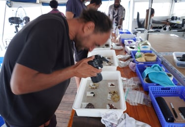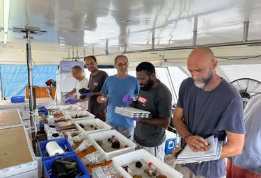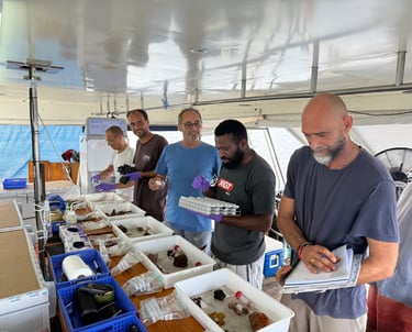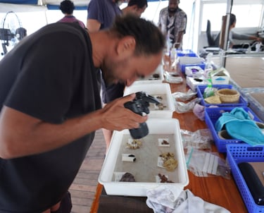 Our team collects marine invertebrates and environmental samples following strict scientific and ethical protocols.